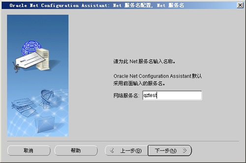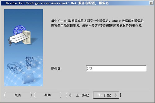 7.输入网络服务名。这个名字不需要去询问Oracle数据库管理员了,自己命名即可。