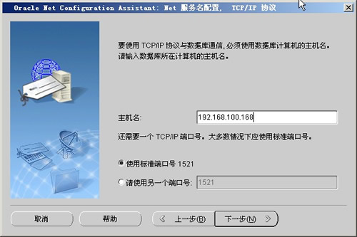 4.输入主机名,即Oracle数据库服务器的机器名或IP地址。如果端口号不是默认的1521,还要输入端口号。(主机名和端口号该输入什么,请询问贵单位的Oracle数据库管理员)