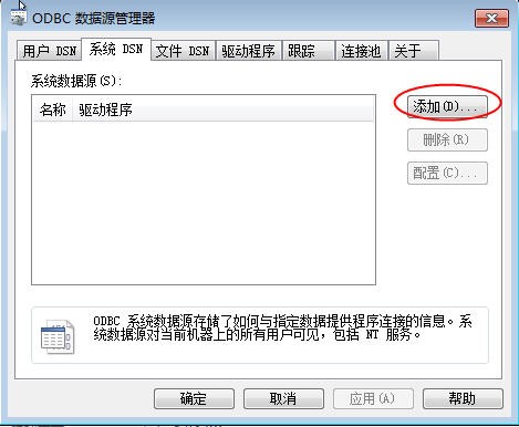 3)在“ODBC数据源管理器”窗口选中【系统DSN】选项卡,点击【添加】按钮。
