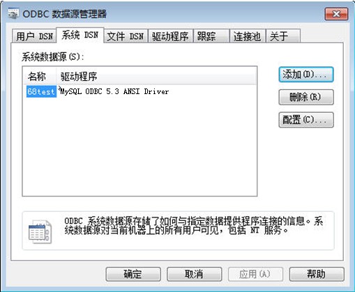配置MySQL外部数据源,需要经过两步,首先:在Excle服务器所在的机器上配置连接MySQL数据库的数据源ODBC。然后:在Excel服务器端注册MySQL外部数据源。