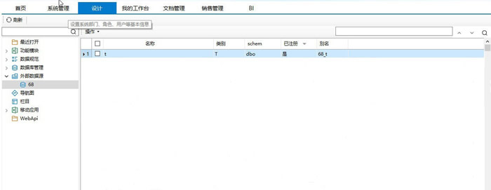 建立外部数据源的操作是由应用系统的管理员在【设计】栏目中建立的,这样建立的外部数据源默认只是能够被这个应用使用。