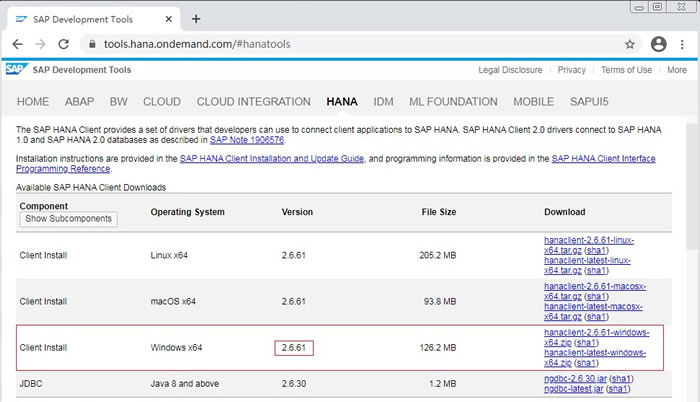1、 在接入SAP Hana数据源之前,需要到Hana官方下载客户端驱动,下载地址如下:https://tools.hana.ondemand.com/#hanatools