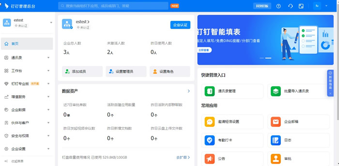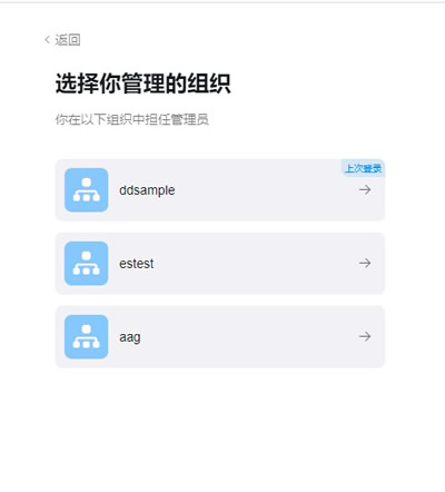 点击要进入的组织,即可进入钉钉后台管理页面。