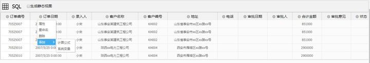 ,为该列字段进行诸如:重命名、设置计算公式、属性查看等操作,对返回的数据集格式进一步加工,满足用户后续的数据分析需求。如果要改变查询结果字段的先后顺序,只要在相关字段上使用鼠标拖拽排序即可。